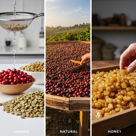 - Lavado: Café limpio, brillante y con mayor acidez.